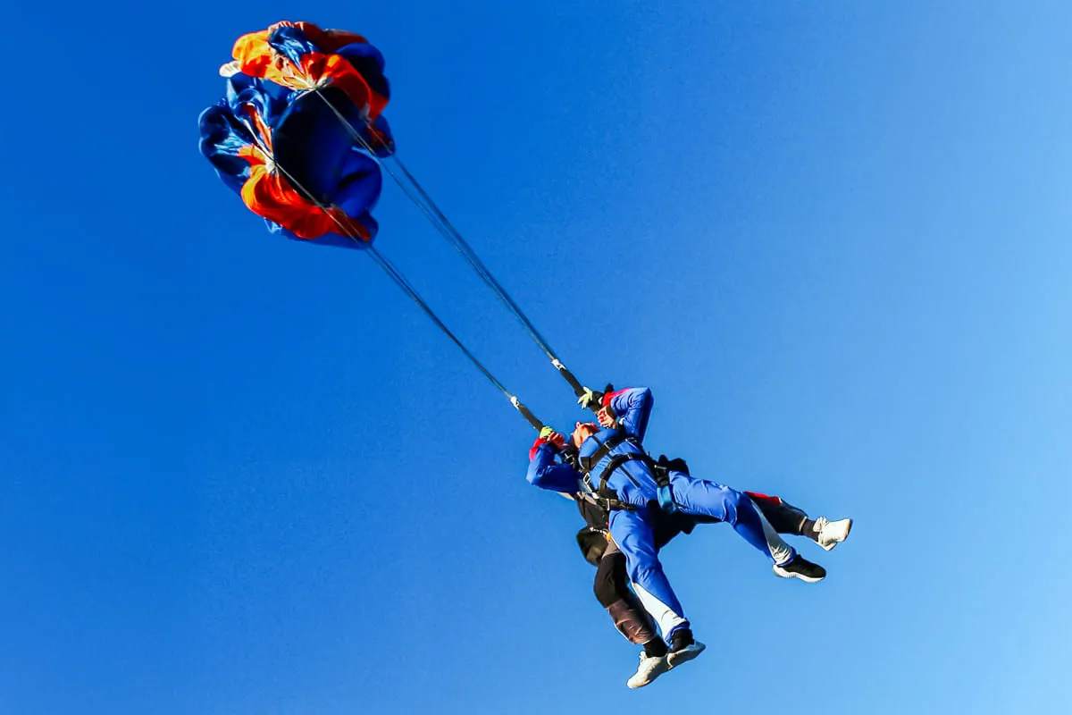Po 5 až 10 minútach letu na padáku sa bezpečne vrátite na zem, s úsmevom na tvári a pocitom, že ste práve prekonali svoje hranice. Pristátia sa obávať nemusíte, je jemné, pohodlné a prvom rade úplne bezpečné.